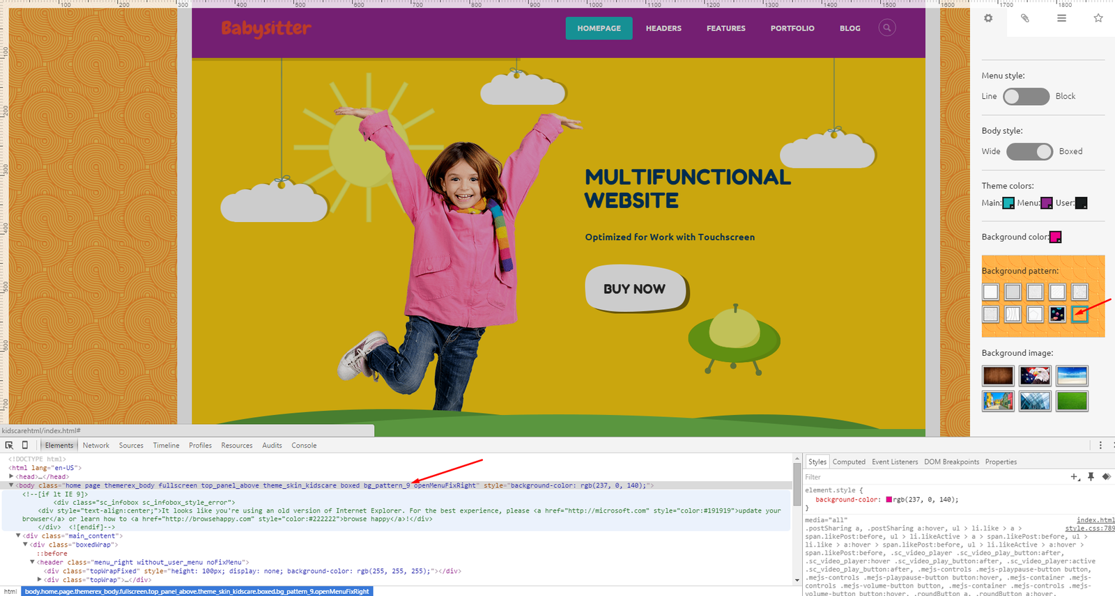 <body class="home page themerex_body fullscreen top_panel_above theme_skin_kidscare boxed bg_pattern_9 openMenuFixRight" style="background-color: rgb(237, 0, 140);">