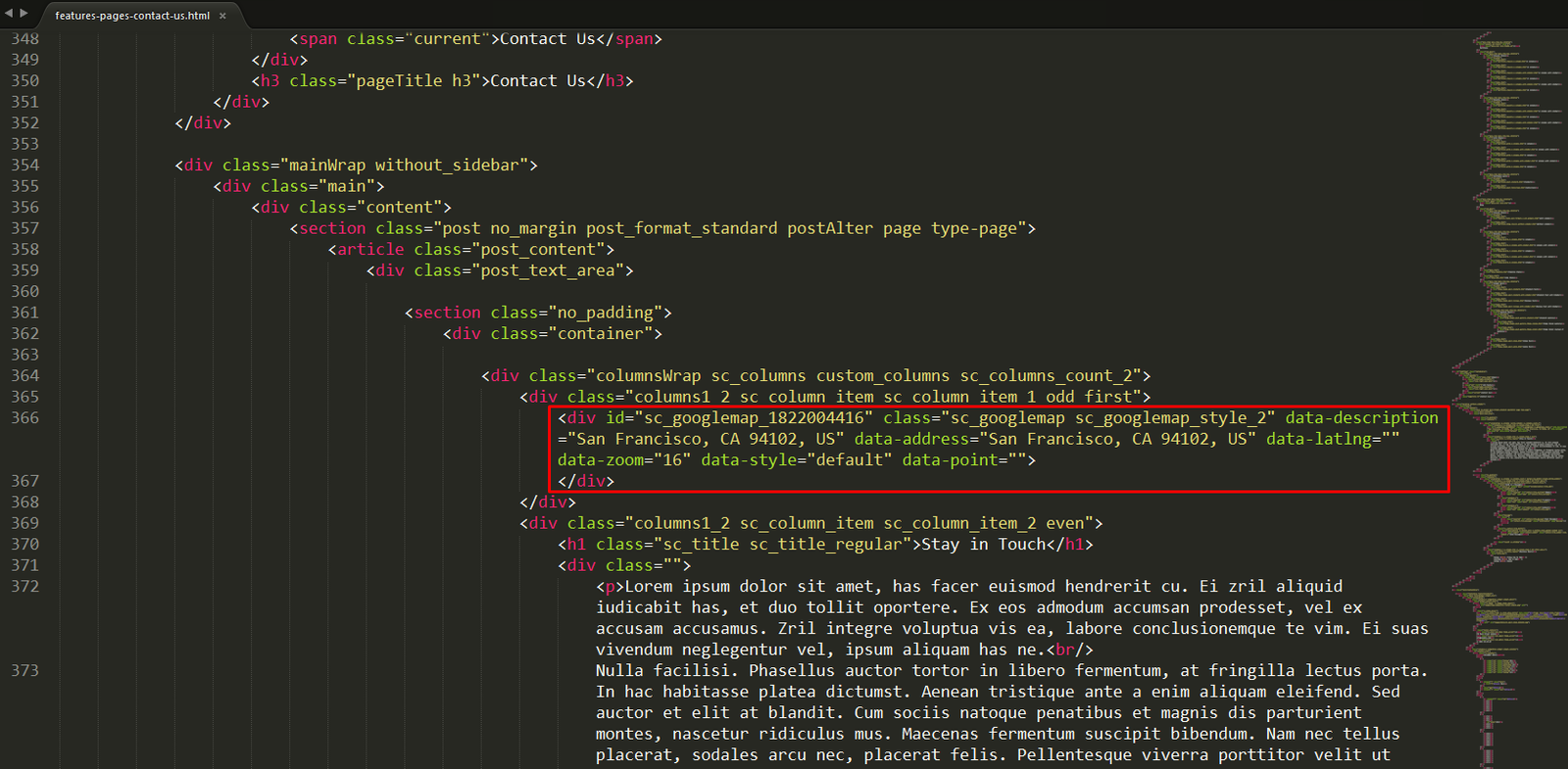 Address/coordinates should be specified in the root directory.../features-pages-contact-us.html file.