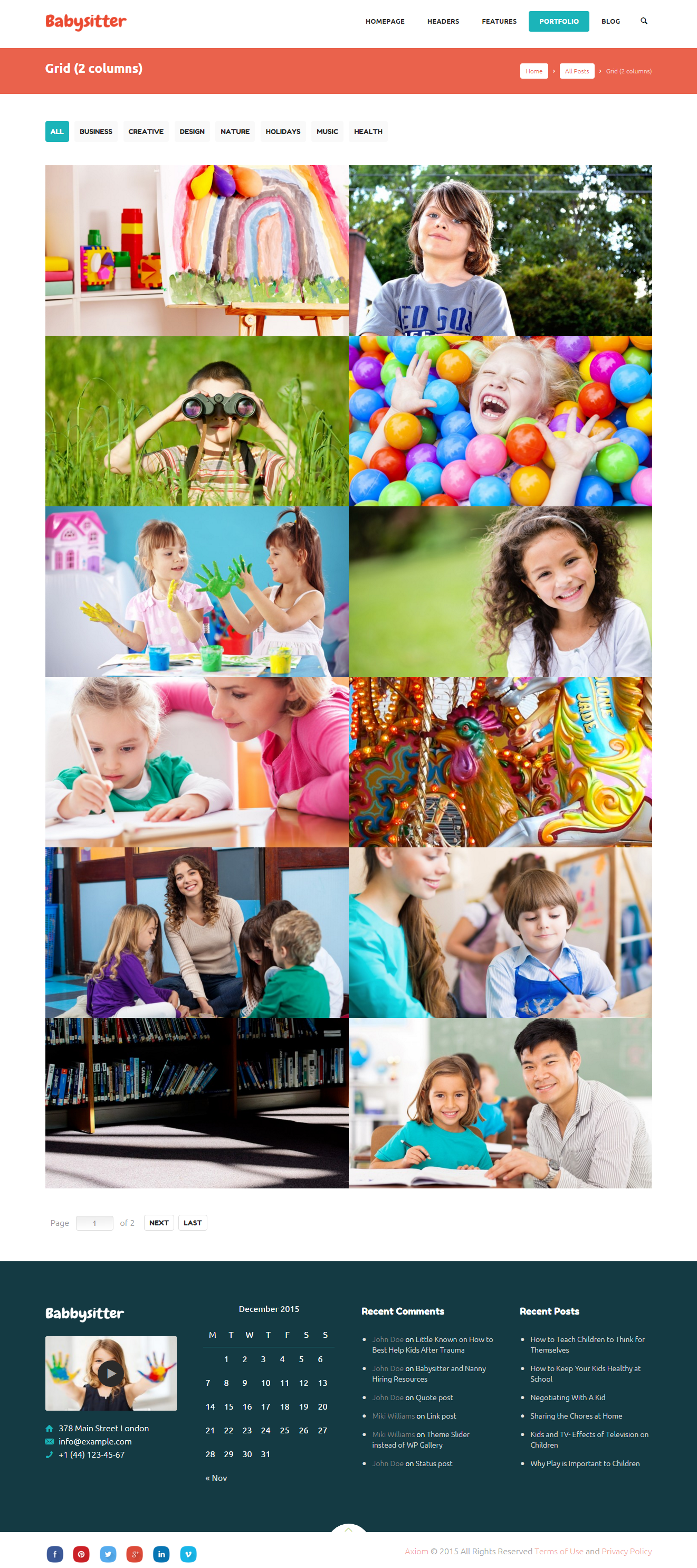 The example of portfolio-like page can be seen on "Grid (2 Columns)" page.