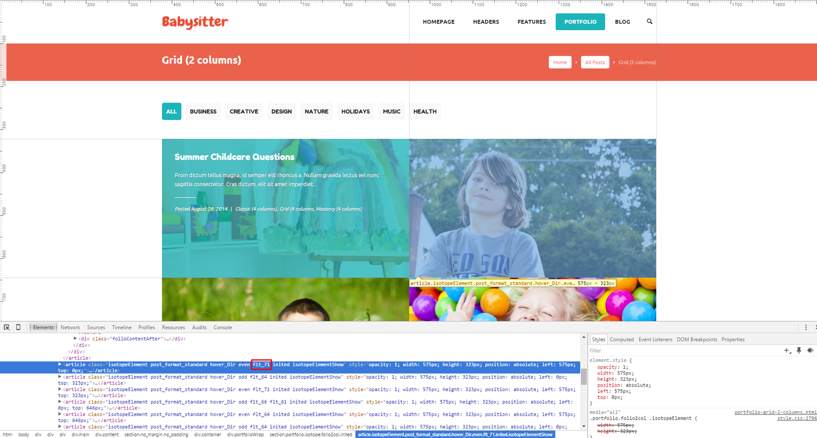 The snippet below belongs to the "Grid (2 Columns)" page which can be found in root directory.../portfolio-grid-2-columns.html file.