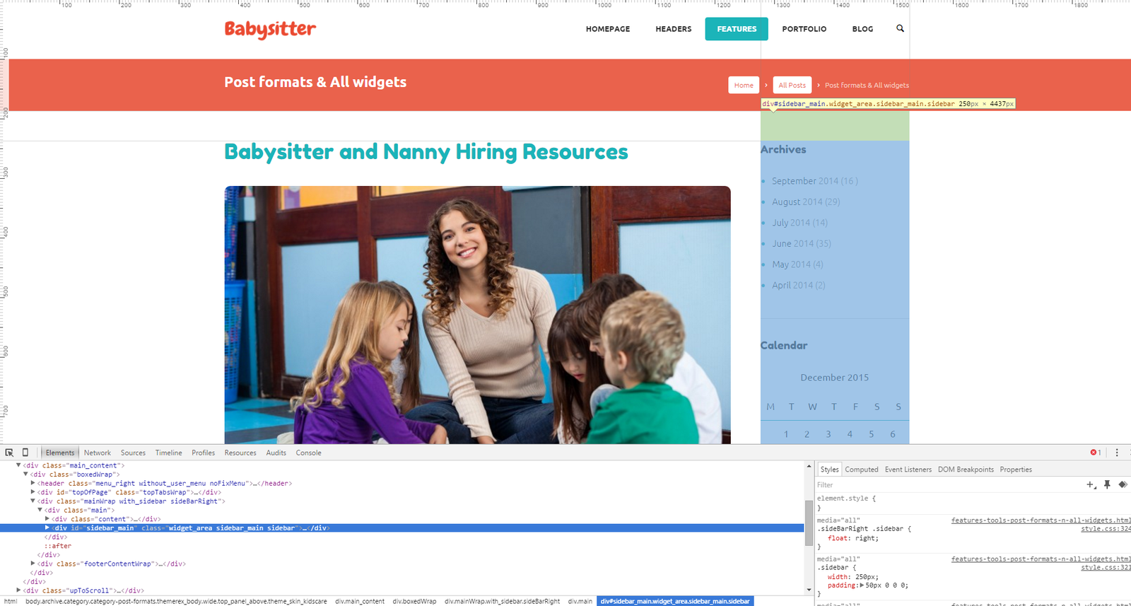 This is how the standard widgets sidebar looks like.