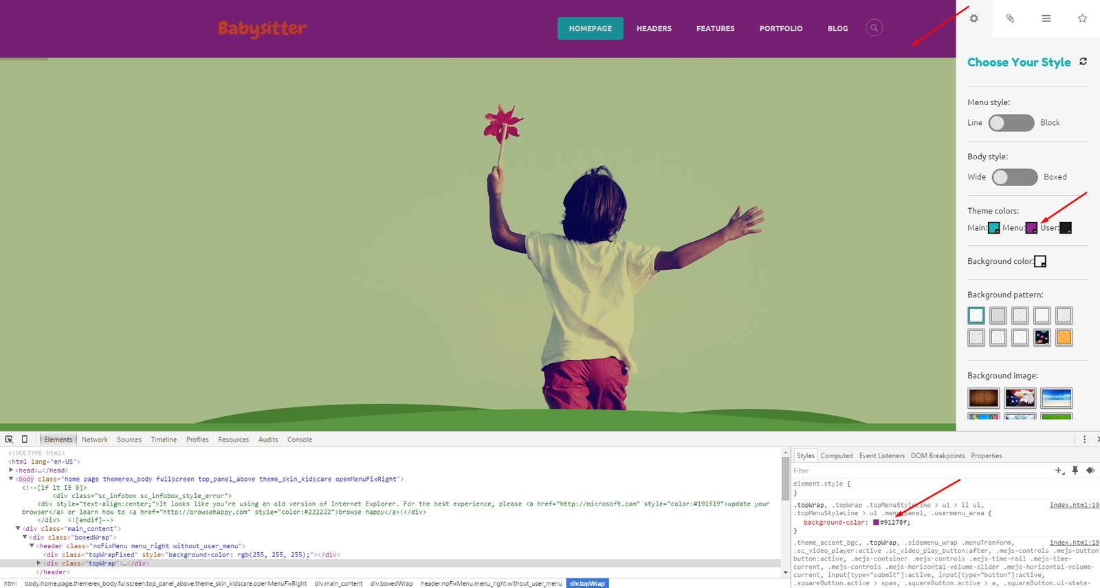 Here you can choose any custom color to act as theme's Main/Menu/User one.